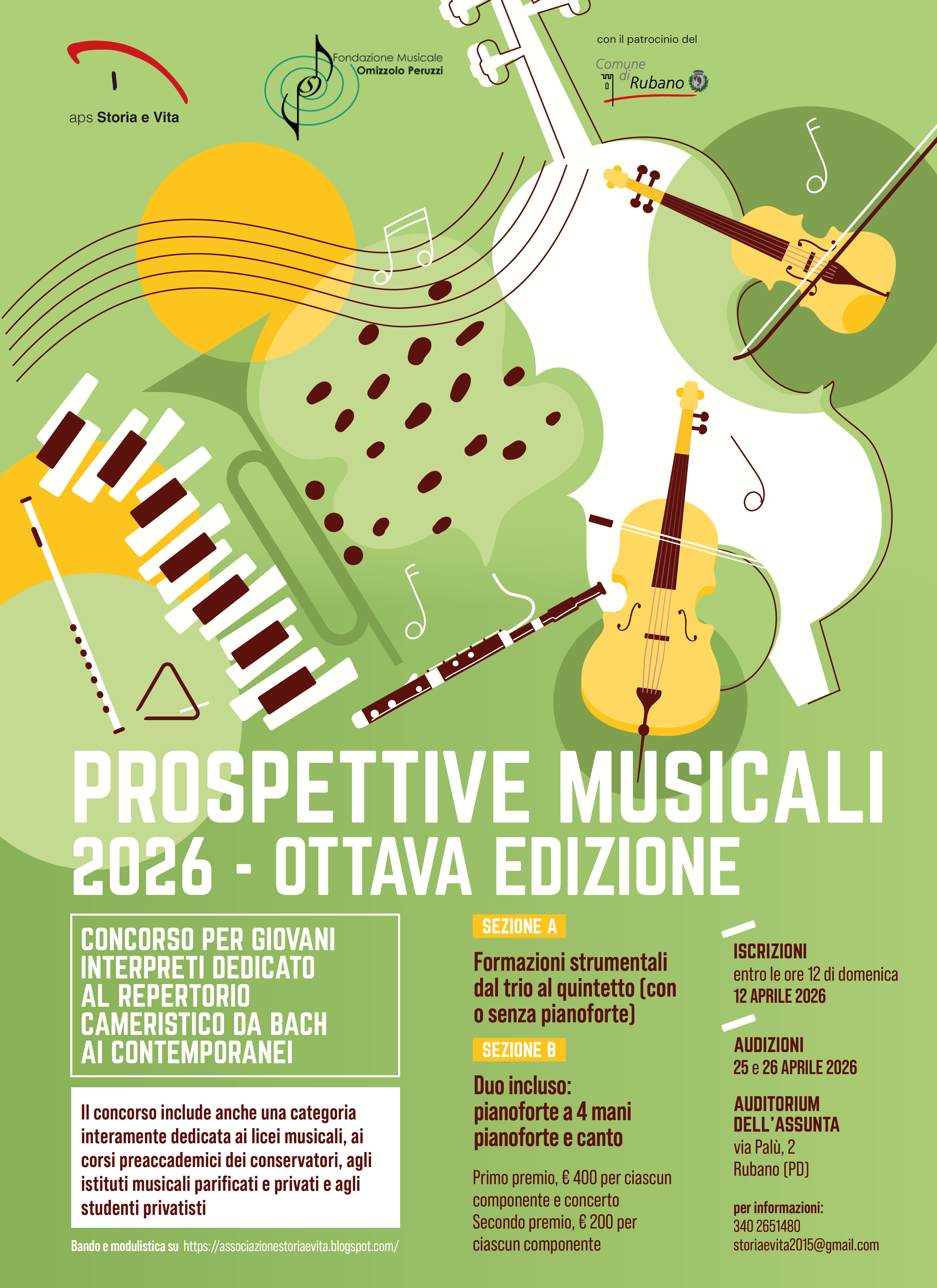 Le audizioni si terranno presso l’Auditorium dell’Assunta - via Palù 2 – Rubano, nei giorni 25 e 26 aprile 2026.