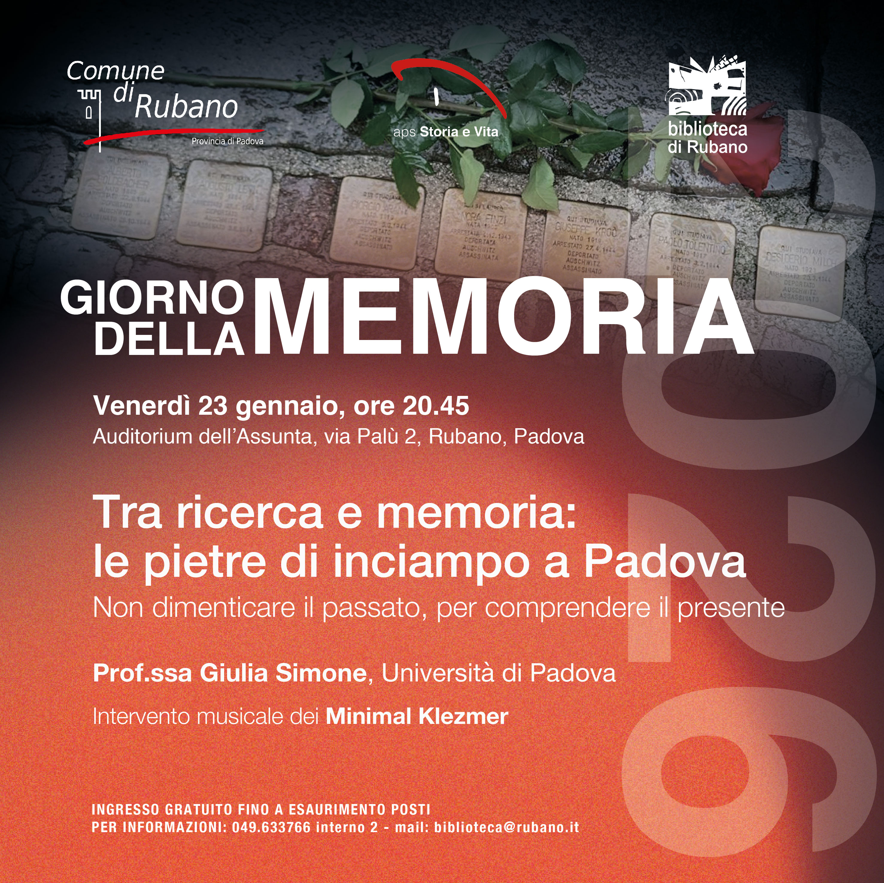 In occasione del Giorno della Memoria l'Amministrazione comunale propone l'iniziativa ad ingresso libero e gratuito all'Auditorium dell'Assunta (via Palù 2 a Rubano) realizzata in collaborazione con l'Associazione di Promozione Sociale "Storia e Vita” di Rubano.