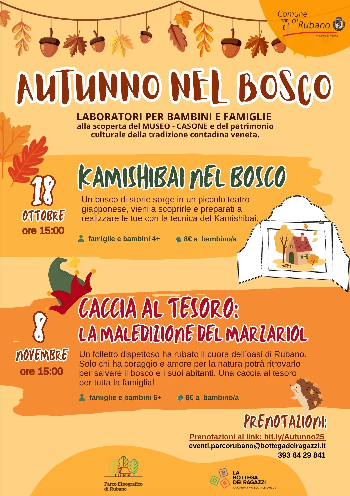 Autunno nel Bosco, allla scoperta del Museo - Casone e del patrimonio culturale della tradizione contadina veneta con due appuntamenti dedicati ai bambini e alle famiglie al Parco Etnografico di Rubano: