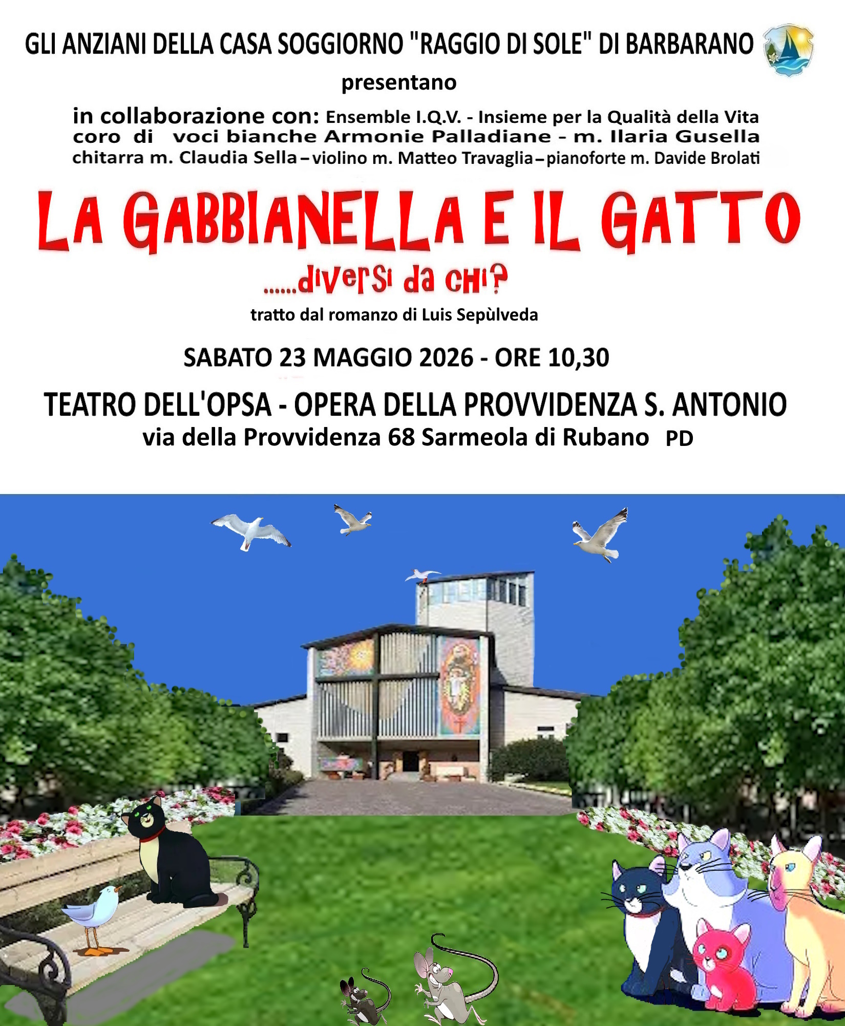 L’Opera Pia Raggio di Sole - Padova, istituzione Pubblica di Assistenza e Beneficenza propone l'evento teatrale tratto dal romanzo di Luis Sepùòveda: "La Gabbianella e il gatto… diversi da chi?"