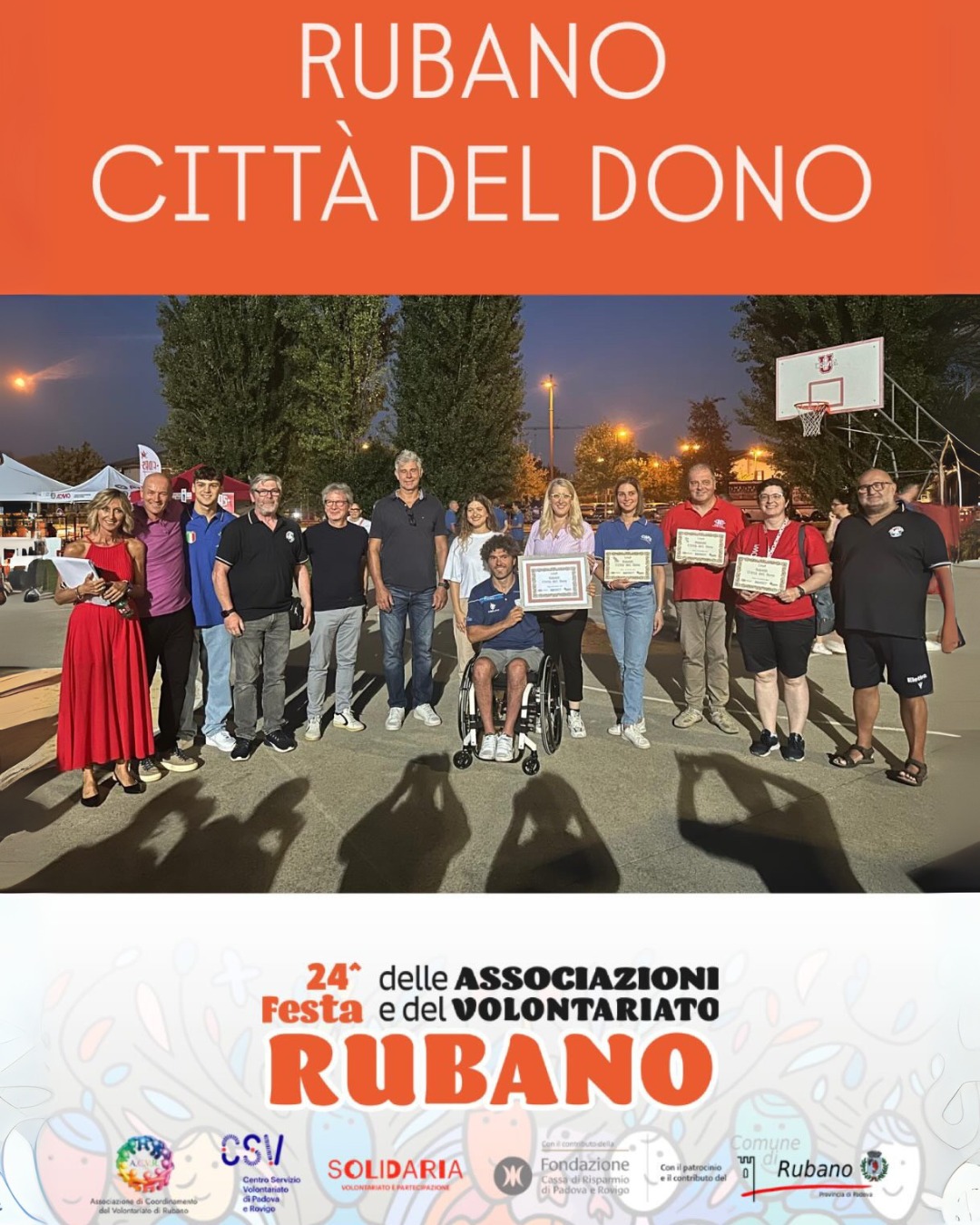 Rubano è stata dichiarata ufficialmente "Città del Dono" lo scorso 20 settembre, in occasione della 24^ Festa delle Associazioni e del Volontariato.